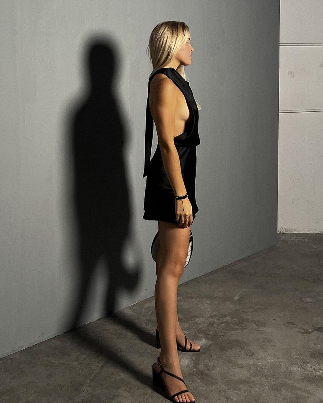 Mini abito drappeggiato Colleen in raso con scollo all'americana