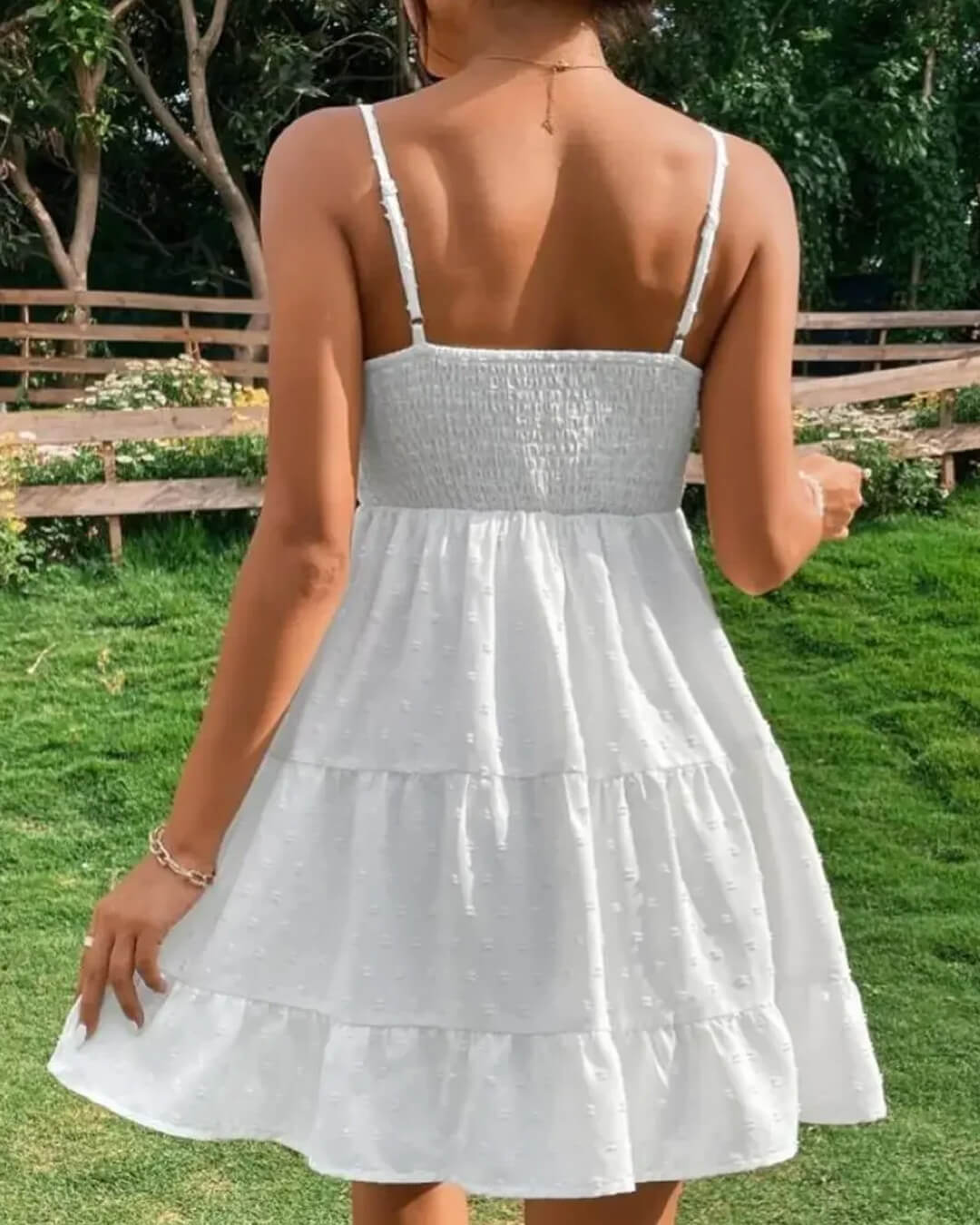 Design: Mini abito stile babydoll con balze a strati e orlo svasato.