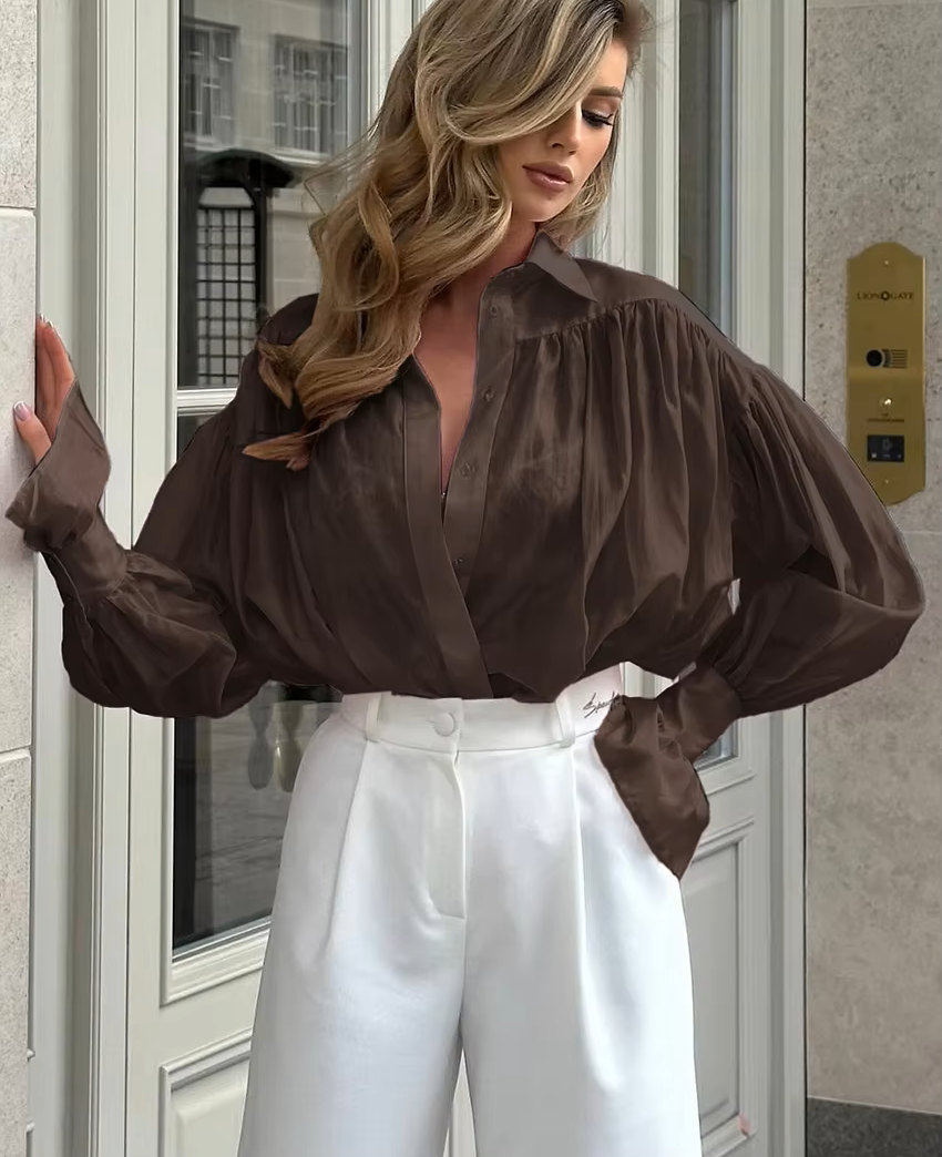Elegant Women's Blouse - Kendall Satin Long Sleeve Top for Summer Style 3