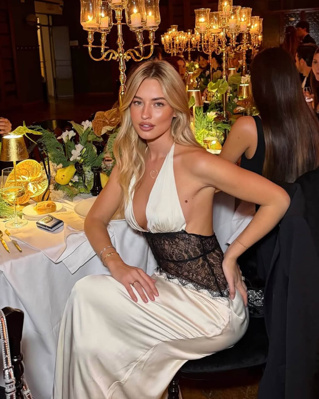 Questo abito Astrid in raso con vita in pizzo e schiena scoperta รจ pensato per farti sentire sicura e bellissima. La sua silhouette elegante e i dettagli raffinati lo rendono un must-have per ogni guardaroba alla moda. Perfetto per chi cerca un abito da sera raffinato, ideale per eventi speciali e feste estive. Il design sofisticato e la qualitร  dei materiali garantiscono comfort e stile in ogni occasione.