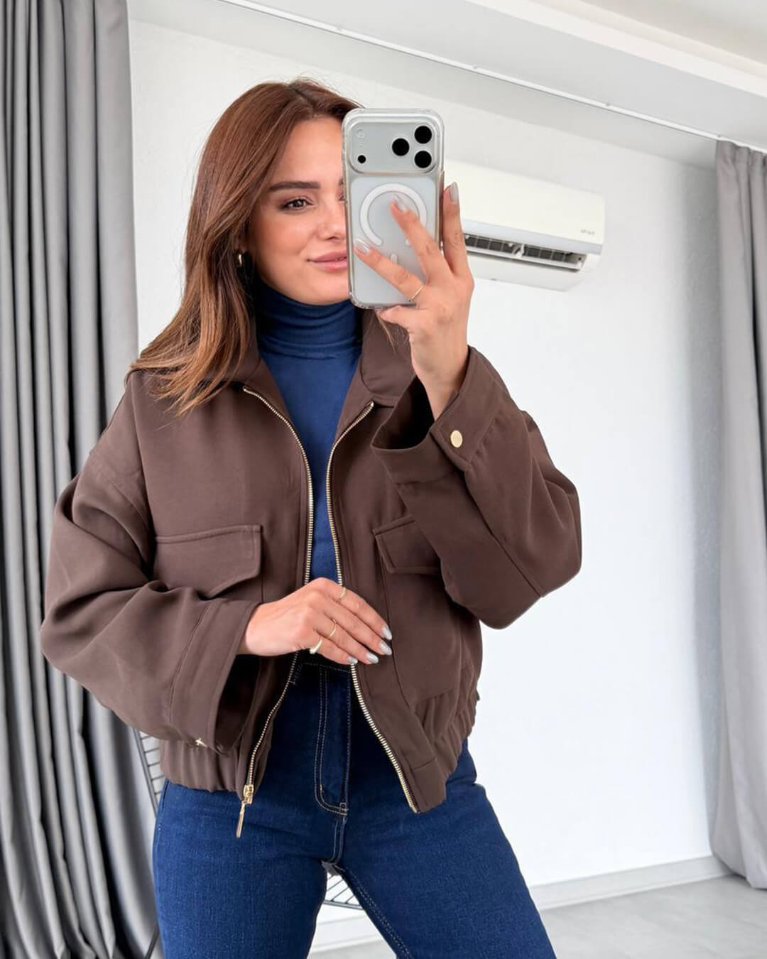 Elevate your transitional wardrobe with the Ginny Flap Pocket Bomber Jacket, a masterclass in refined streetwear. Designed for the discerning individual who values both form and function, this jacket is the ultimate layering essential for autumn and spring. Whether you’re navigating a crisp October afternoon or a breezy April morning, the Ginny Bomber provides a structured yet lightweight silhouette that feels effortlessly polished. Featuring prominent flap pockets for a utilitarian edge and high-quality ribbed detailing, this piece offers a contemporary update to the classic flight jacket. Its premium construction ensures durability while maintaining a soft, luxurious hand-feel. Invest in a quality-made staple that brings a touch of high-fashion versatility to your everyday rotation.