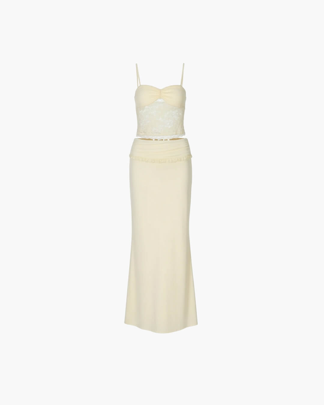 Questo splendido completo da donna in pizzo 2 pezzi presenta un top corto a canotta arricciato senza spalline abbinato a una gonna lunga aderente a vita alta. Perfetto per feste, locali o uscite in vacanza, questo outfit unisce eleganza e comfort.