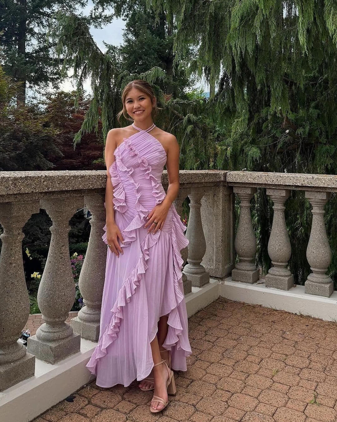 Entra nell'eleganza con questo splendido abito da sera Ruffa Halter Strap Ruffled Tule Dress, pensato per occasioni indimenticabili. La spallina con volant aggiunge un tocco di raffinatezza, mentre la schiena con allacciatura garantisce una vestibilitร  perfetta. Ideale per feste, vacanze ed eventi speciali, questo vestito incarna tutto il fascino della moda Y2K, offrendo stile, comfort e unicitร  per ogni occasione.
